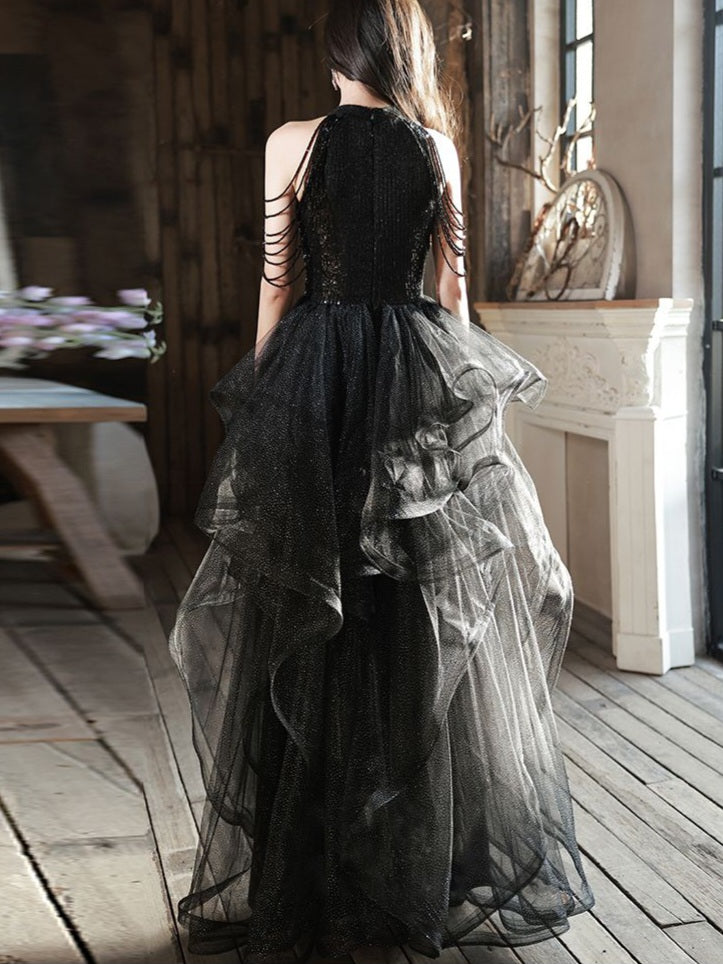 Sequin Halterneck Tulle Maxi Dress