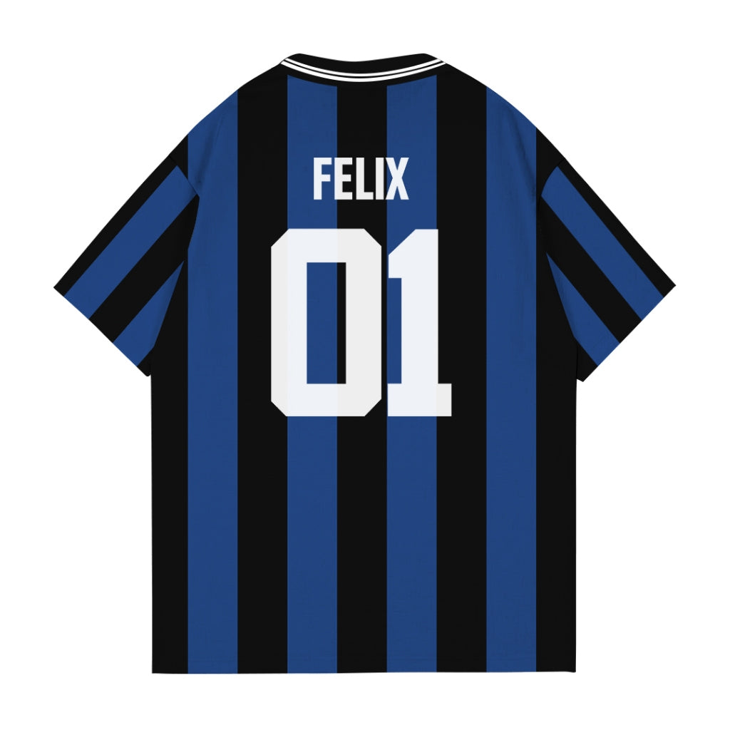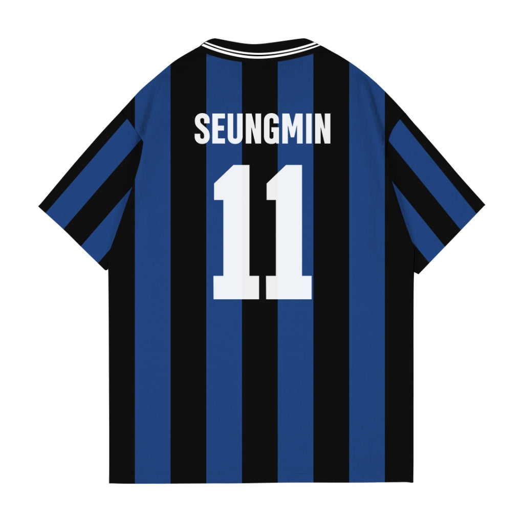 Stray Kids "KARMA" Jersey is a bold fusion of performance style and fandom pride. Designed in striking black and electric blue stripes, this jersey captures that powerful “Karma hits back” energy, sleek, confident, and ready to move. The “SKZ” crest and 'CEREMONY' sleeve detail, while the standout “KARMA” print ties it all back to their unstoppable momentum.